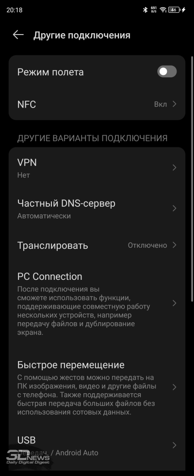 Остальные беспроводные модули: двухдиапазонный Wi-Fi (802.11 a/b/g/n/ac/6 – в отличие от PHANTOM V Fold, здесь есть Wi-Fi 6), Bluetooth 5.1, спутниковая навигация с поддержкой основных систем (GPS с A-GPS, ГЛОНАСС, BeiDou и Galileo) и уже упомянутый NFC.
