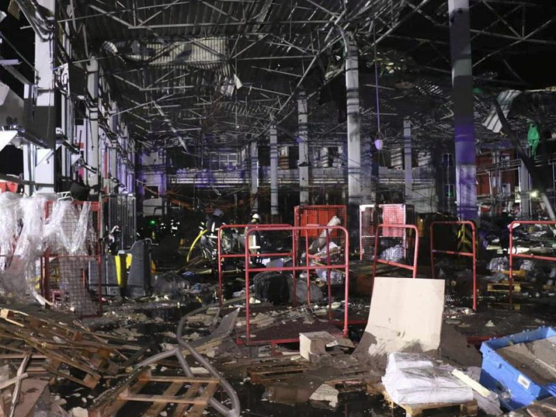 Здание терминала, находящийся в нем груз и автомобили почти полностью уничтожены.