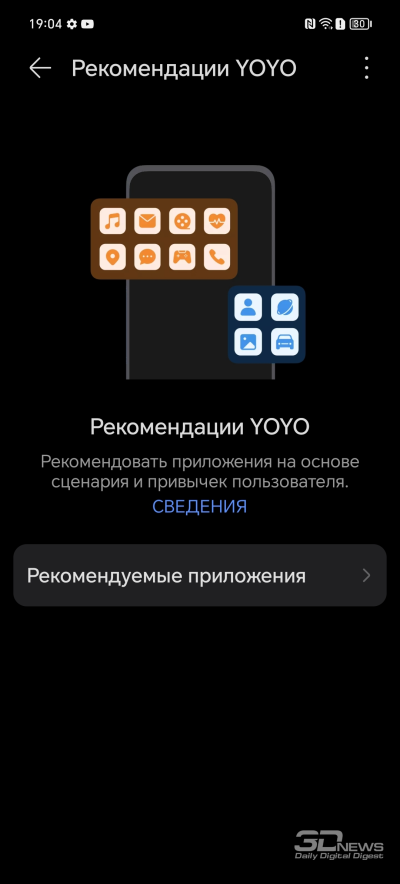 От прошлогодней MagicUI 6.1 новая оболочка отличается в первую очередь раздельной панелью уведомлений и быстрых настроек – это более актуальное и современное решение. Также обращает на себя внимание слегка расширенная функциональность умного помощника YoYo – теперь он умеет распознавать текст на картинке. Оболочка опрятная, быстрая, с модными большими папками и без какой-либо странной специфики. Предустановленных приложений немало, но не могу сказать, что здесь откровенный перебор (как у соседей из HUAWEI, например). Google-сервисы, конечно же, на месте — HONOR эти проблемы больше не касаются.