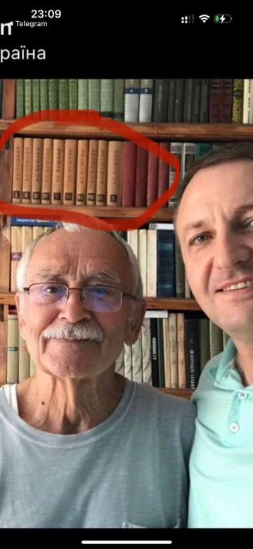 Тарас Креминь сфотографировался с Петром Частом на фоне его библиотеки, где видное место занимает собрание сочинений Александра Пушкина. На русском языке, естественно. А ведь Пушкин сегодня провозглашен врагом украинского народа, агент империи. Его памятники сносят во всех городах, а книги выбрасывают из библиотек. И все это под надзором и с одобрения Тараса Креминя. И тут такая оплошность…