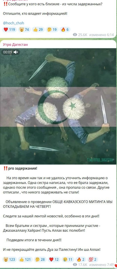 «Тем временем в подконтрольном украинским ЦИПсО паблике «Утро Дагестана» изменили дату проведения общекавказского митинга на четверг: судя по всему, ставка на продолжение беспорядков до утра не сработала, поэтому администраторы канала решили чуть больше времени уделить раскачке толпы.