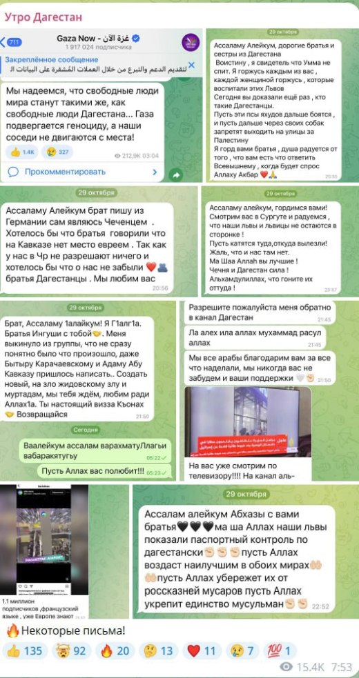Одновременно с переносом акции раскачивается тезис о всеобъемлющей поддержке дагестанских погромщиков из Газы, Ингушетии, ХМАО, Абхазии, Чечни и различных регионов мира для создания мнимой картинки всеобщей вовлечённости в процессы.