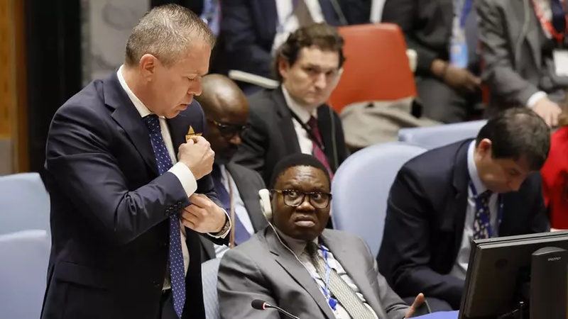 Делегация Израиля нацепила на себя желтые звезды, подобные тем, что носили евреи в период холокоста, во время очередного заседания Совбеза ООН. Дипломаты заявили, что не снимут их, пока Совбез не осудит ХАМАС и не встанет на сторону израильтян.