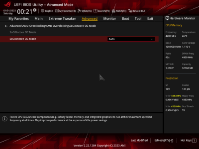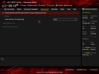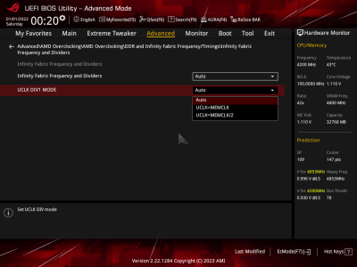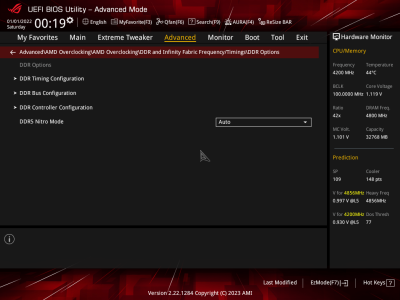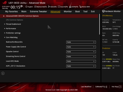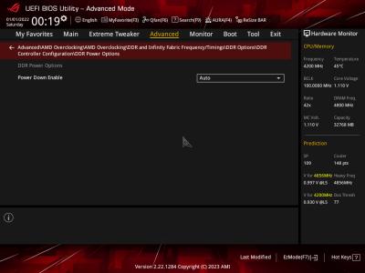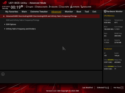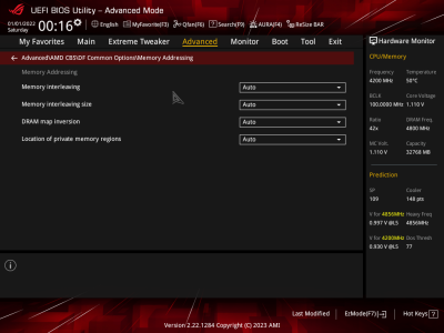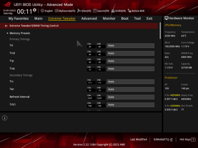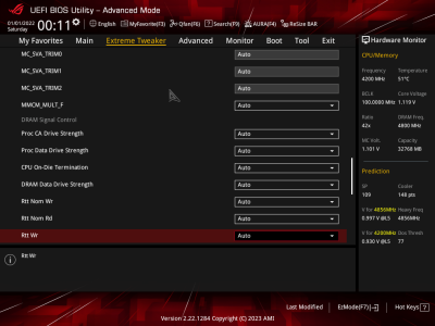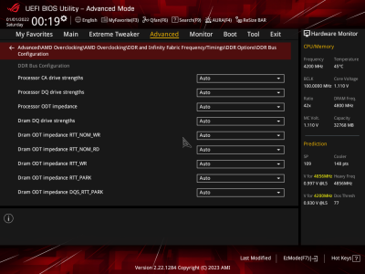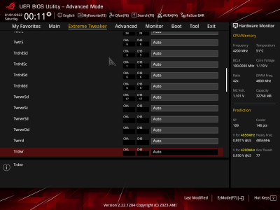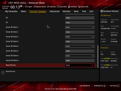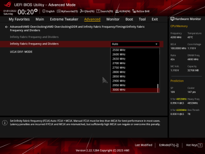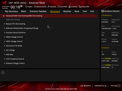 Еще одним способом увеличить быстродействие системы с Ryzen 9 7950X3D станет настройка оперативной памяти. Прочитав статью «Как DDR5-память влияет на производительность Ryzen 7 7800X3D: отвечаем на главные вопросы», вы узнаете, что в случае с платформой AMD нет смысла гнаться за быстрыми DDR5-модулями. Гораздо эффективнее станет настройка таймингов того или иного комплекта. ROG Crosshair X670E Hero, к слову, обладает пятью параметрами функции Ai Overclock Tuner — три из них касаются ОЗУ. Пользователь может: