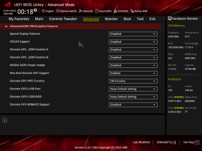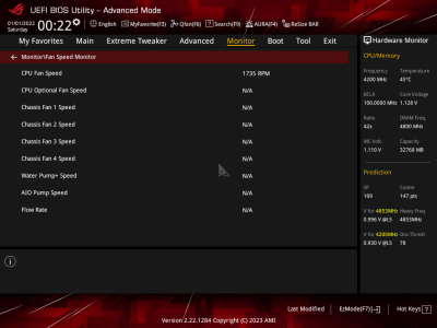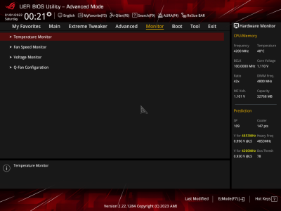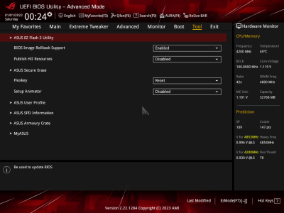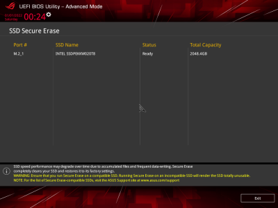 Страница Advanced отвечает за конфигурацию аппаратных ресурсов платы. На странице Monitor отображены показатели датчиков температур, напряжений, а также всех подключенных к матплате вентиляторов. Вкладка Boot позволяет сконфигурировать загрузочные устройства и задать другие параметры, касающиеся старта системы. Наконец, меню Tool дает доступ к сохраненным пользовательским профилям настроек UEFI BIOS, к функции Secure Erase, которая стирает всю информацию с SSD, а также к вкладкам с подробной информацией об установленных в плате модулях оперативной памяти и о режимах работы имеющихся видеокарт.