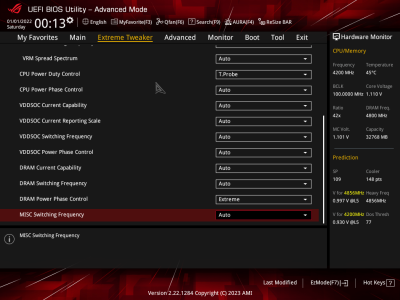 | Memory Voltage Switching Frequency | 0,75/1,5 | 0,25 |