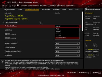 Описание работы функций Ai Overclock Tuner выглядит как-то скомканно. Однако включение режима DOCP Tweaked / EXPO Tweaked заметно ускорило работу подсистемы памяти. Значит, его и будем использовать во время тестирования.