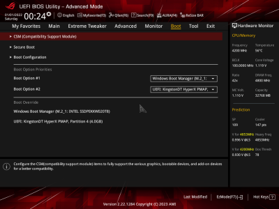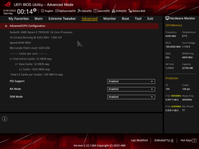 | Материнская плата (версия BIOS) | ASUS ROG Crosshair X670E Hero (BIOS 1709) |