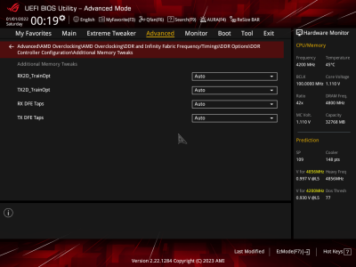 - включить режим DOCP Tweaked / EXPO Tweaked — загрузка профиля памяти с настройками для улучшения производительности, если это возможно.