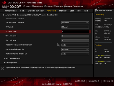 Второй момент — разгон процессоров серии Ryzen 7000X3D в классическом понимании этого термина невозможен. В частности, мы не можем самостоятельно менять множитель. К тому же после всем известных событий максимальное напряжение таких центральных процессоров не может быть выше 1,3 В. По сути, мы можем немного увеличить частоту ядер чипа за счет активации технологии AMD Precision Boost Overdrive и настройки Curve Optimizer.