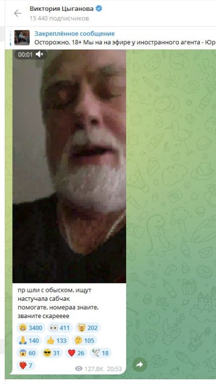 Чуть позже Вика Цыганова выложила в своем канале вот такой пост: «пр шли с обыском. ищут. настучала сабчак. помогате. номераа знаите. званите скарееее».