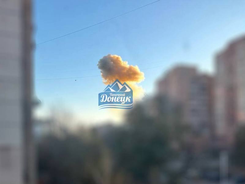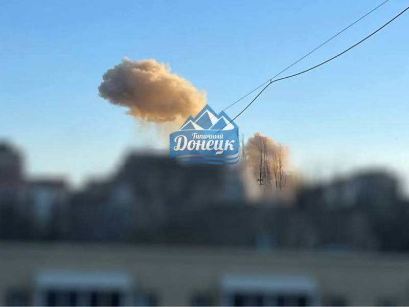 Первый удар по Донецку прозвучал в районе половины пятого вечера. Жители центра города насчитали не менее четырех громких взрывов, на фото и видео, распространившихся в соцсетях, были видны клубы дыма.
