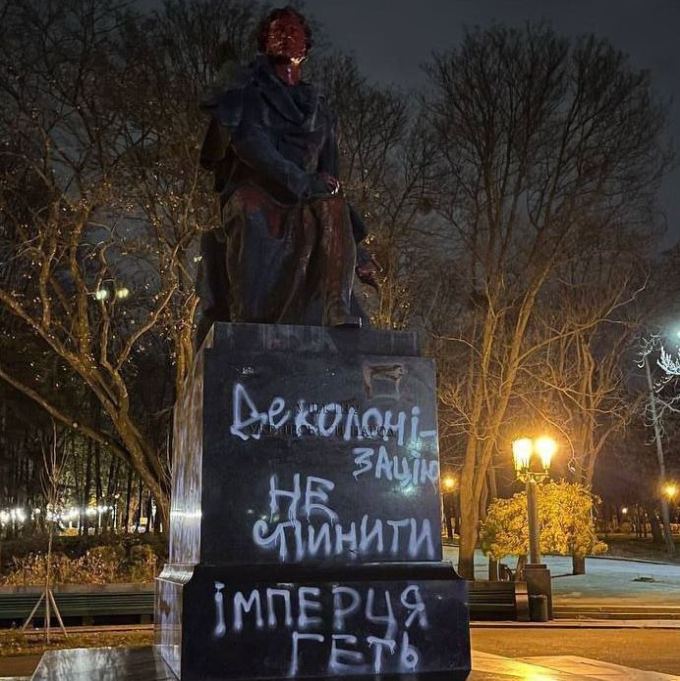 В конце октября борцы с памятниками надругались над памятником Пушкину в Киеве.
