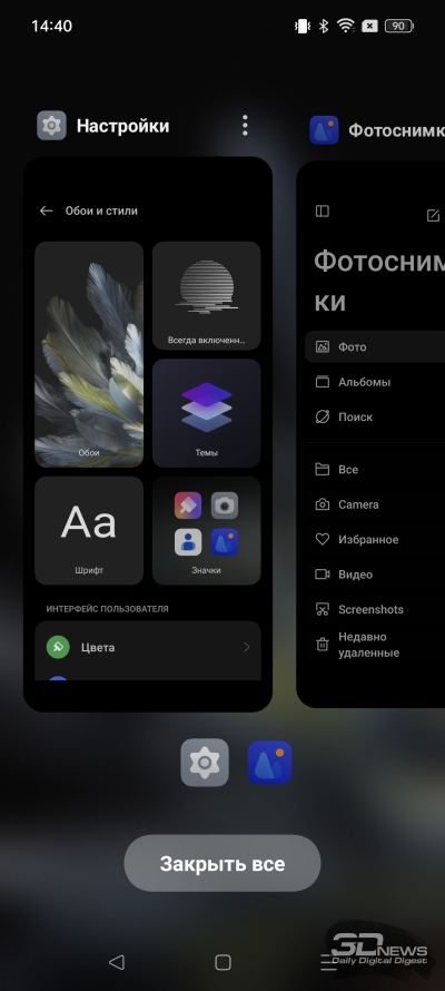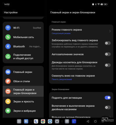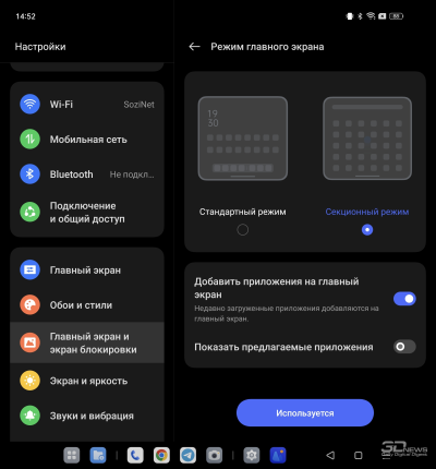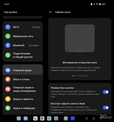 В целом оболочка работает хорошо, быстро, без глюков и тормозов — в том числе и при постоянном переключении между большим и малым экраном.