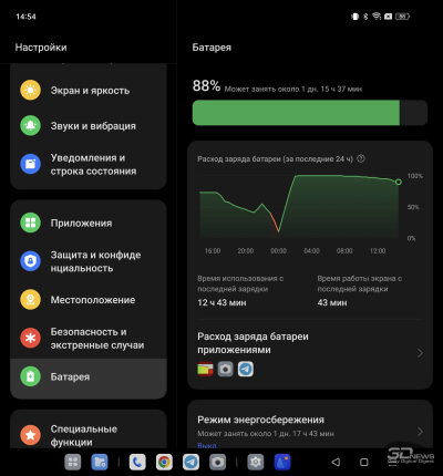 OPPO Find N3 оснащён аккумулятором ёмкостью 18,26 Вт·ч (4805 мА·ч, 3,8 В). Это весьма достойный показатель для складного смартфона, хотя и не рекордный. Смартфон не ставит каких-то рекордов по автономности, но полный день он продержится в любом случае, даже если вы будете довольно часто обращаться к большому внутреннему экрану.