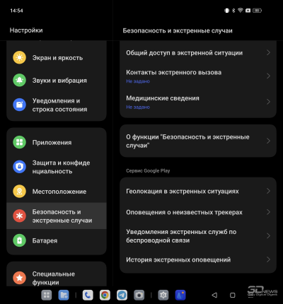 На верхней грани расположилась пара динамиков, а также микрофон и инфракрасный порт для управления телевизором и другой домашней техникой. На нижней грани есть ещё пара динамиков, а также порт USB Type-C и слот для пары SIM-карт. Впрочем, про пару динамиков — это не точно. Всего производитель заявляет о трёх динамиках на OPPO Find N3, но решеток мы насчитали аж пять (разговорный над внешним экраном + еще четыре на гранях). Звук при этом слышен из четырех точек при раскрытом внешнем экране, так что речь, вероятно, идёт о трёх динамиках помимо разговорного. Солидно, если так .