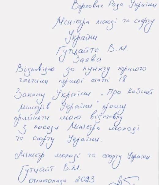 По словам Гутцайта, он сам подал заявление, так как решил больше не совмещать министерский портфель с должностью президента Национального олимпийского комитета Украины.
