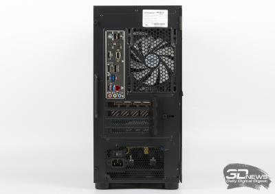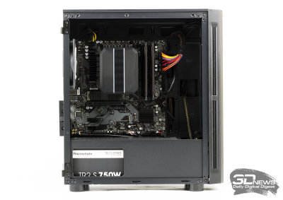 Системный блок собран в корпусе форм-фактора Midi-Tower. При описании Strike 520 так и хочется использовать эпитет «классический». Корпус поддерживает установку материнских плат форм-факторов mATX и mini-ITX. Блок питания расположен в стандартном месте — снизу, видеокарта установлена горизонтально. Боковая стенка корпуса целиком выполнена из закаленного стекла.