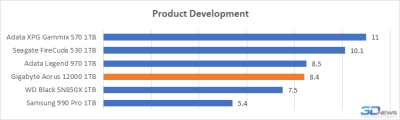 Такой накопитель выглядит действительно интереснее PCIe 5.0-предшественников, превосходя их практически в любом виде нагрузки. К сожалению, мы всё ещё не можем сказать, что Gigabyte Aorus 12000 — абсолютно лучший потребительский накопитель сегодняшнего дня, но он как минимум очень хорош в игровых нагрузках, а также не уступает никаким соперникам при типовых файловых операциях. Иными словами, там, где высокие линейные скорости могут сыграть положительную роль, Gigabyte Aorus 12000 проявляет себя очень достойно. Оговорку нужно сделать лишь относительно ресурсоёмких профессиональных приложений, где от SSD требуется высокая скорость работы с интенсивными мелкоблочными обращениями. В таких задачах Aorus 12000 чувствует себя не совсем в своей тарелке и проигрывает некоторым флагманским моделям с интерфейсом PCIe 4.0.