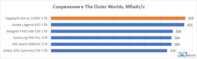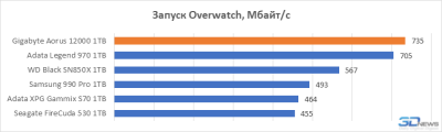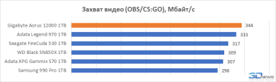 Знакомство с производительностью Gigabyte Aorus 12000 в отдельных игровых сценариях 3DMark позволяет убедиться, что это самый быстрый потребительский SSD при запуске игр, при их установке, при записи сохранений, при захвате видео игрового процесса в OBS и даже при переносе игровых директорий с внешнего носителя. Иными словами — действительно идеальный вариант для геймеров.
