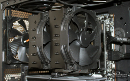 Когда смотришь на эти фото кулера на плате, возникает только один вопрос: для чего (кого?) сделаны узкие пакеты рёбер в нижней части радиатора? Лучше бы оставили полноразмерные пакеты рёбер, а не эту имитацию совместимости. И да – это касается не только RZ620, но и большинства других двухбашенных кулеров, выпущенных в последнее время.
