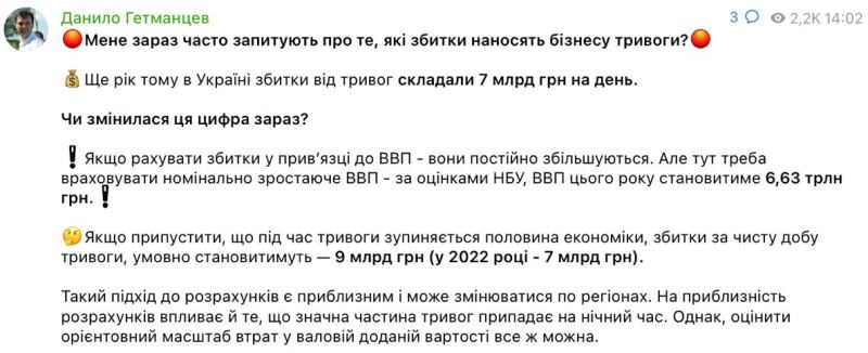 Мировое обозрение»В мире»Украина»На Украине подсчитали убытки для экономики из-за воздушных тревог — около $240 млн в сутки