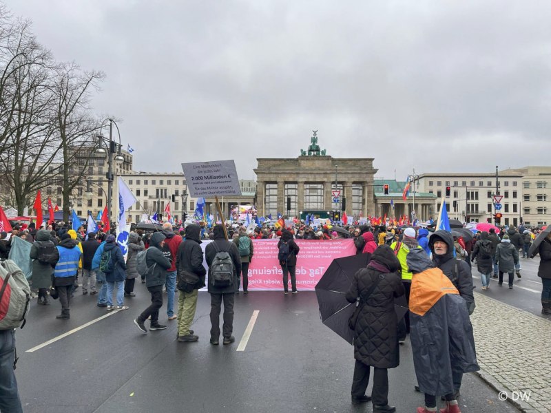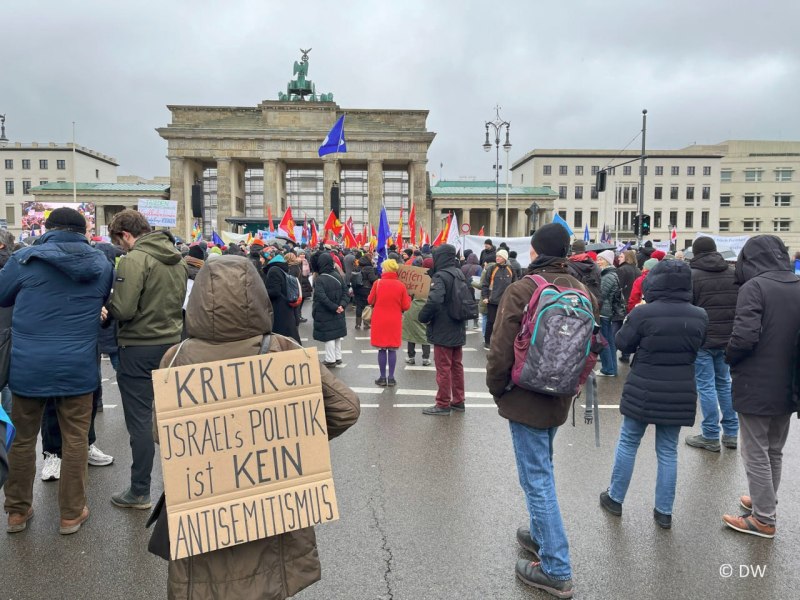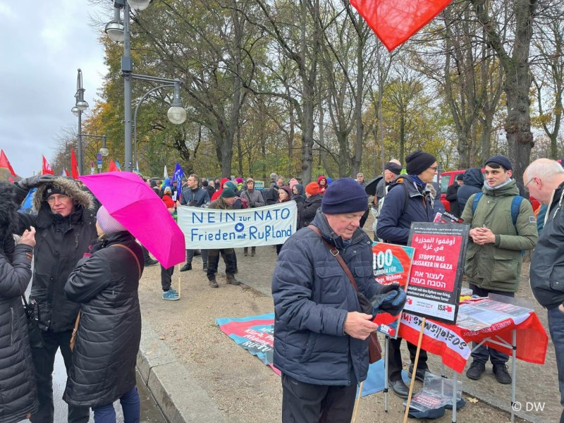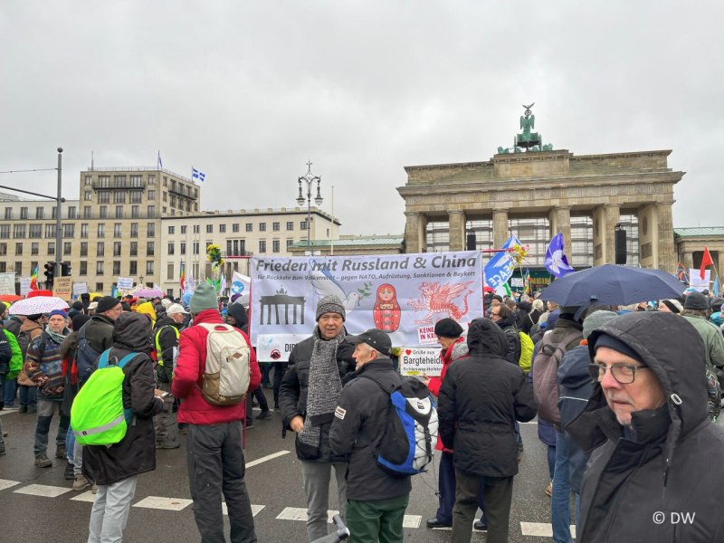 На мероприятие в центре германской столицы собралось несколько тысяч человек, на плакатах, помимо прочего, лозунги в поддержку России и Китая.