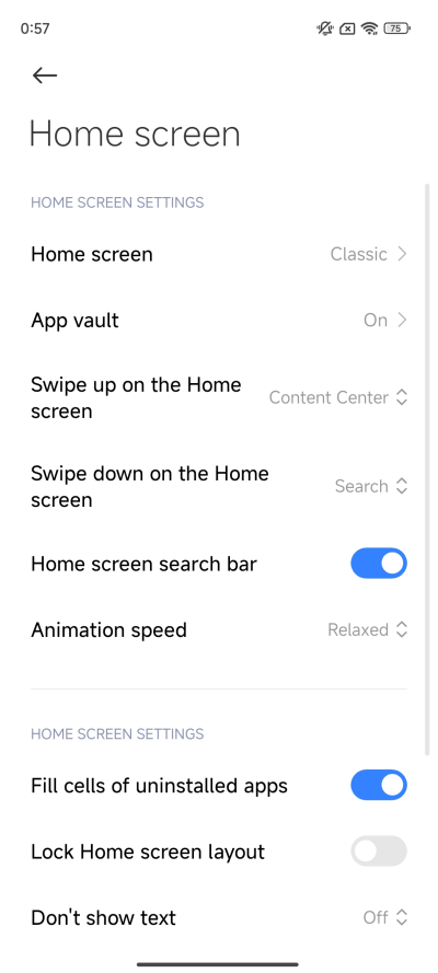 Но от MIUI она, безусловно, заметно отличается. Во-первых, она стала, как и обещали, легче – в данном случае занимает 8,81 Гбайт, тогда как последние версии MIUI «весили» не меньше 12 Гбайт. Во-вторых, она изменилась внешне, пусть и не кардинально. Общий стиль и шрифты – оставлены без изменений, все перерисовывать через два года после большого дизайн-обновления MIUI точно было бы странно; а вот значки частично обновлены. Что переделано полностью, так это панель быстрых настроек: исчезли подписи, при клике по пиктограмме либо срабатывает нужный параметр, либо открывается окошко поверх текущего экрана, а не новый экран; новый экран открывается, если задержать палец на искомом значке. При этом из меню быстрых настроек исчез значок перехода к полноценному экрану настроек – это не очень удобно, надо каждый раз искать его на общем рабочем столе, как на iOS.