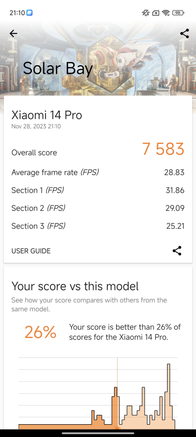 Xiaomi 14 Pro получил батарею емкостью 18,54 Вт·ч (4880 мА·ч, 3,8 В). С автономностью у смартфона все очень неплохо – если не слишком много на нем играть. Соцсети, фото, видео – стандартный набор активностей – не особенно перенапрягут смартфон, и он вполне успешно проживет весь день. Но вот игры, которые почти гарантированно приведут к перегреву, очень быстро сажают батарею. Геймерам стоит брать с собой внешние аккумуляторы (и ждать обновлений софта, которые, возможно, уменьшат проблему). Отмечу хороший момент – при падении уровня заряда до 2-3% смартфон не выключается, а переходит в режим гибернации, позволяющий отправлять экстренные вызовы и принимать звонки. Это действительно отличное решение.