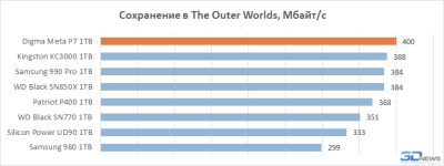 Но когда дело доходит до архивации или разархивации, при которых разнонаправленные операции носят разнородный характер, Digma Mеta P7 проигрывает не только SSD на полноценных восьмиканальных платформах, но и, например, безбуферному WD Black SN770.