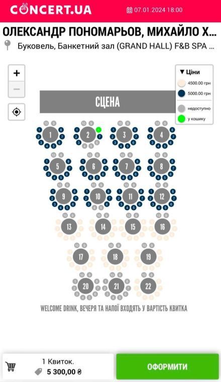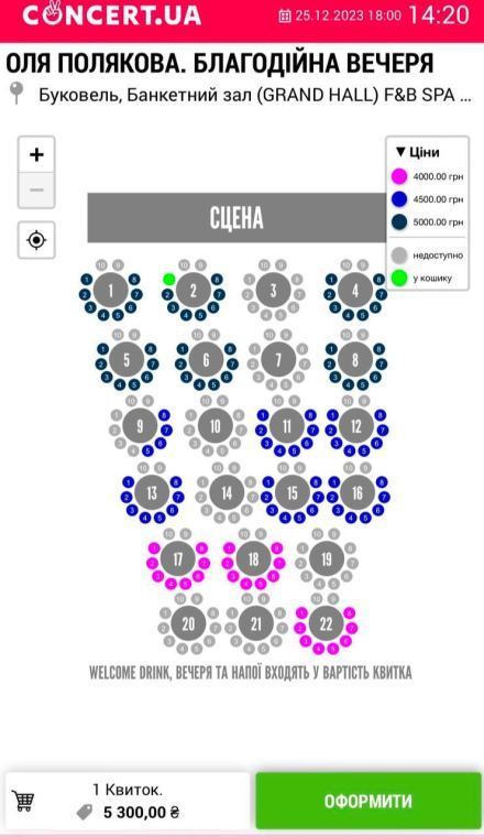 Стоимость одного билета на концерт Ольги Поляковой колеблется от 4000 до 5300 гривен, в зависимости от расположения столика к сцене.
