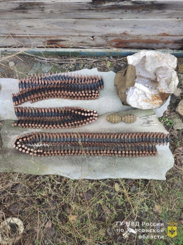А на чердаке заброшенного дома в селе Кривой Рог Херсонской области полицейские совместно с росгвардейцами нашли тканевую сумку с боеприпасами. Из нее извлекли две гранаты Ф-1 с запалами и пулемётную ленту с 473 патронами калибра 7,62 мм различной маркировки. После осмотра правоохранители установили, что находка пригодна для дальнейшего использования, поэтому было принято решение направить ее в комнату хранения вещественных доказательств. В дальнейшем боеприпасы ждет экспертиза в ЭКЦ ГУ МВД Херсонской области.