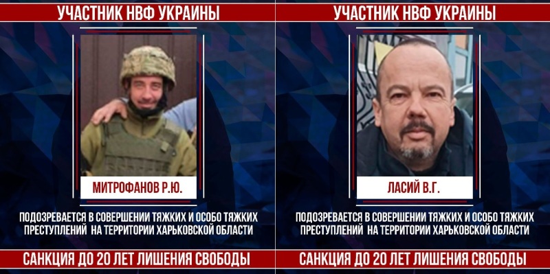 Несколько участников НВФ обвиняются в совершении тяжких и особо тяжких преступлений, предусмотренных ст.276, ст.280.3 и ст.285 УК РФ. Среди них – сотрудник «ГСЧС Купянского района Харьковской области» Роман Юрьевич Митрофанов, старший водитель «ГСЧС Купянского района Харьковской области» Валерий Геннадьевич Ласий, заместитель начальника части «ГСЧС Купянского района Харьковской области» Николай Николаевич Обыхвост и водитель «ГСЧС Купянского района Харьковской области» Олег Леонидович Ваховский. Все четверо проживают на территории Купянского района Харьковской области, им грозит до 20 лет лишения свободы.