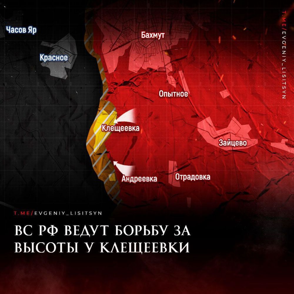 На АРТЁМОВСКОМ НАПРАВЛЕНИИ развивают успех и расширяют зону контроля у ХРОМОВО в сторону ИВАНОВСКОГО. Не стихают бои в КЛЕЩЕЕВКЕ и у АНДРЕЕВКИ, хотя здесь их результат пока не так заметен.