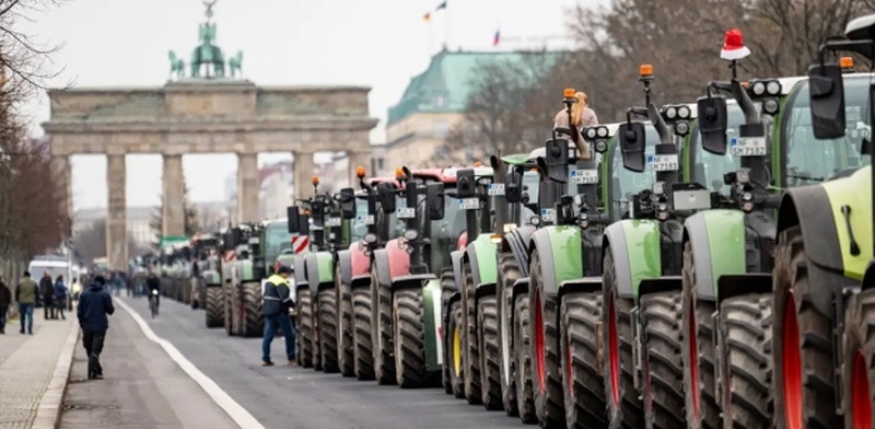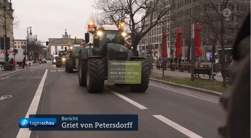В понедельник Ассоциация немецких фермеров провела зрелищный протест в центре Берлина, к Бранденбургским воротам съехались около 1500 тракторов. Руководитель ассоциация Йоахим Руквид пообещал «очень горячий январь», если их требования не услышат.