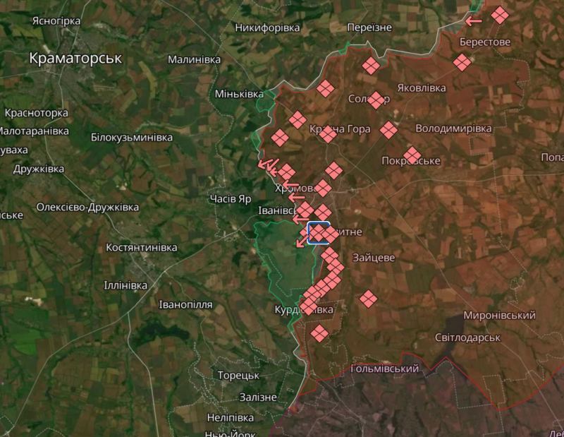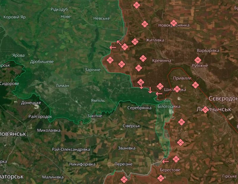 На Лиманском Россия возобновила интенсивное наступление для вытеснения ВСУ из района Серебрянского лесничества и расширения Торского выступа, идет попытка захвата села Терны и выхода к реке Черный Жеребец.
