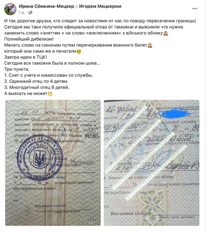 Многодетного отца восьмерых детей не выпустили за границу, потребовав обратиться в ТЦК и заменить в военном билете слово «снятием» на «исключением» во фразе о снятии с воинского учета.