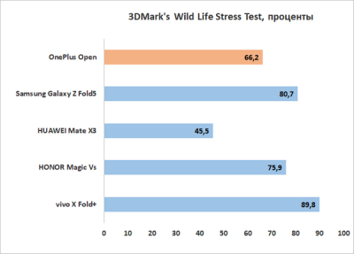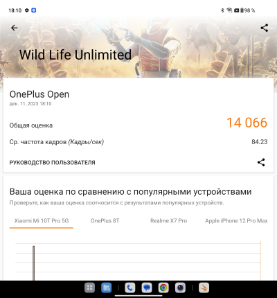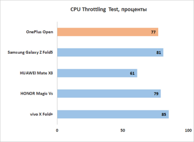 Само собой, ничего неожиданного ни по производительности, ни по троттлингу/нагреву мы не видим, все как у OPPO. Отличный уровень мощности в сочетании с приемлемым (но не более того) троттлингом. По мощности смартфон уступит только грядущим (и уже вышедшим) гаджетам со Snapdragon 8 Gen 3, но, напомню, у того же Xiaomi 14 Pro, который мы уже протестировали, серьезнейшие проблемы с перегревом.
