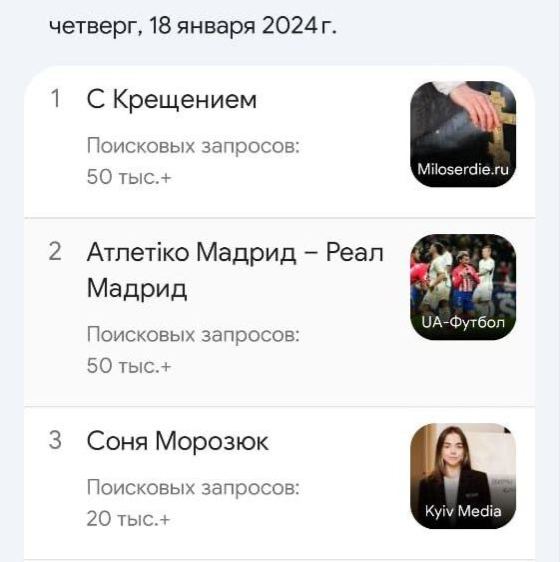 Также за минувшие сутки запрос «С Крещением», где массово украинцы искали картинки и поздравления, по данным Google Trends, занял первое место.