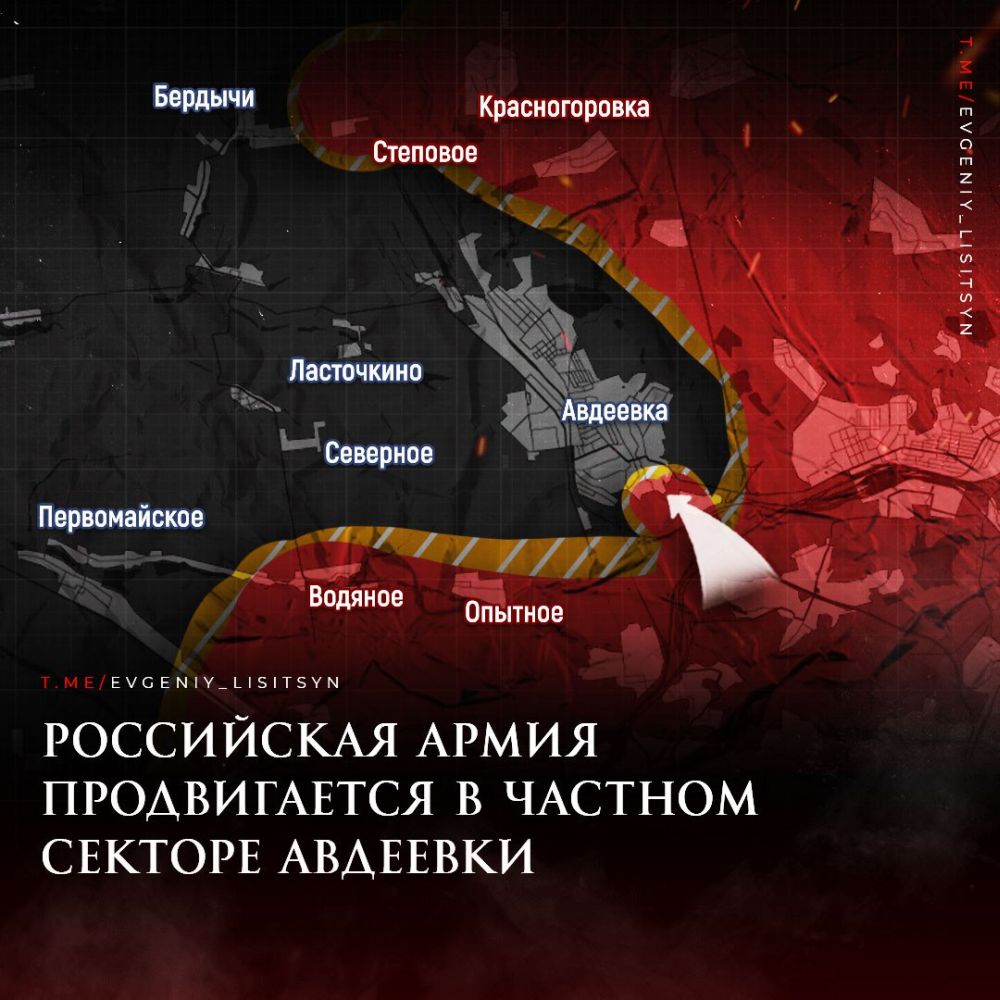 На АВДЕЕВСКОМ НАПРАВЛЕНИИ за вчерашний день нашими бойцами был взят очередной украинский «опорник» в южной части АВДЕЕВКИ. Также ВС РФ продвигаются по улице Соборной в частном секторе в Авдеевке. Соседние улицы постепенно переходят в «серую зону».