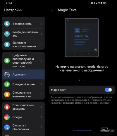 И справляется с этим Magic UI 7.2 хорошо. Самое главное – переключается между двумя режимами система бесшовно и без ошибок. При этом опыт взаимодействия разный: в сложенном состоянии это «узкий», привычный смартфонный режим, а в разложенном — скорее планшетный, с почти квадратным форматом и расширенной строкой быстрого доступа к приложениям в нижней части экрана.