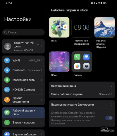 В HONOR V Purse используется, по сути, та же программная среда, что и в HONOR Magic Vs, – Android 13 с оболочкой Magic UI 7.2. Несмотря на иной форм-фактор, суть не меняется: два экрана разного формата, под которые необходимо подстраивать рабочий стол и приложения.