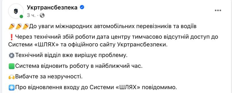Вскоре после этих заявлений государственная служба Украины по безопасности заявила, что временно недоступны сайт «Укртрансбезопасность» и система для пересечения границы «Шлях» («Путь»), которая создана для пропуска мужчин-волонтеров и водителей через границу страны.