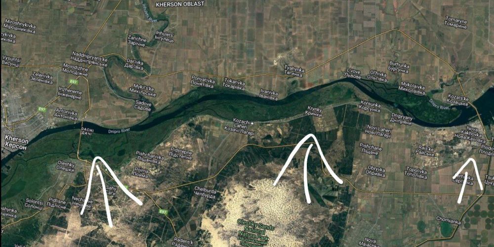 Что касается островов на реке ДНЕПР, с места докладывают: острова полностью под нашим контролем, за исключением островов в районе населённого пункта Крынки, где укрофашисты переправляют живую силу и обеспечение на левый берег.