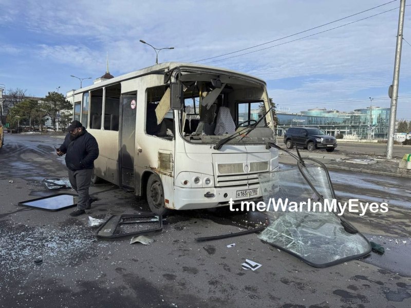 Сегодня в Киевском районе столицы ДНР беспилотник сбросил боеприпас на Привокзальной площади Донецка на маршрутный автобус, готовящийся к посадке пассажиров. Ранен водитель. Пассажиры обработали рану, забинтовали голову водителю и вызвали скорую. Транспортное средство получило значительные повреждения.