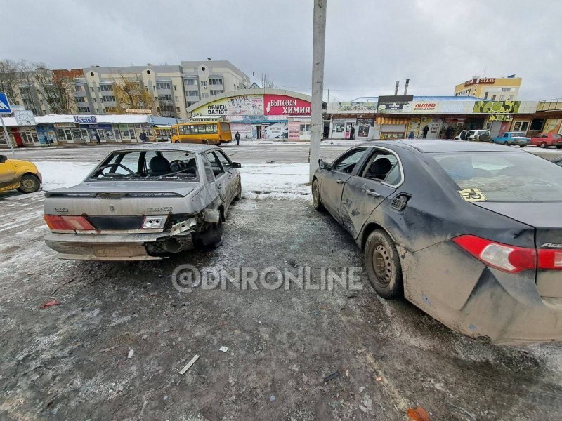 В результате сброса взрывоопасного предмета с БПЛА возле ж/д вокзала в Донецке (Киевский район) были повреждены 2 легковых автомобиля и 1 автобус маршрута № 26