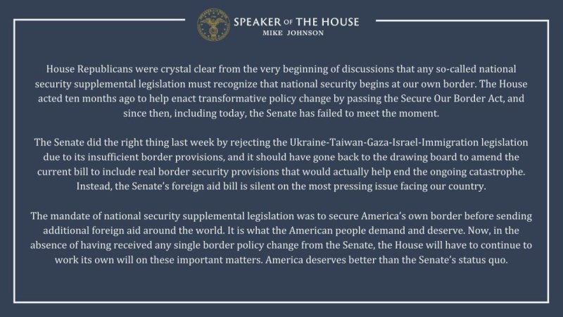Мировое обозрение»В мире»Украина»Украина «ощутимо разочарована». Джонсон блокирует закон с иностранной помощью и границей в одном пакете