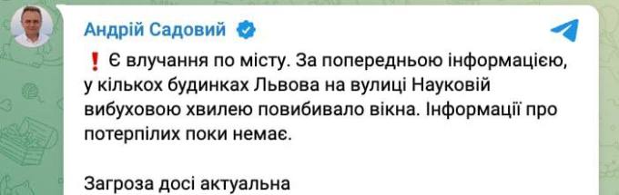 Огневое поражение нанесено объектам во Львове, на которых находился в том числе офицерский состав. Мэр Садовой подтвердил прилет по объекту инфраструктуры.