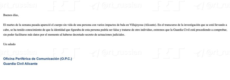 В Гражданской гвардии Испании, допустили, что у убитого в Испании мужчины, которого в СМИ называют лётчиком-предателем Кузьминовым, могли быть поддельные документы.