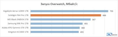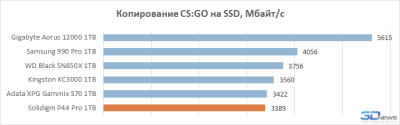 Знакомство с производительностью Solidigm P44 Pro в отдельных игровых сценариях 3DMark позволяет убедиться, что это самый быстрый потребительский PCIe 4.0 SSD при запуске игр, при их установке, при записи сохранений и даже при захвате видео игрового процесса в OBS. Иными словами — действительно идеальный вариант для геймеров, не имеющих в системах слотов M.2 с поддержкой PCIe 5.0.
